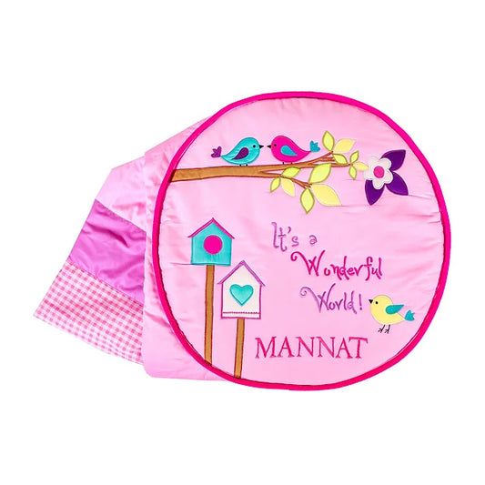 Chirping Birdies Single Bed Travel Cushion cum Quilt (Rose Pink)
