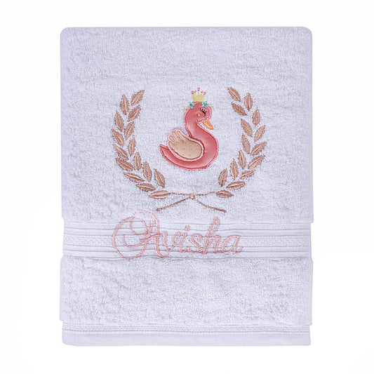 Ivy Swan Bath Towel (White and Coral)