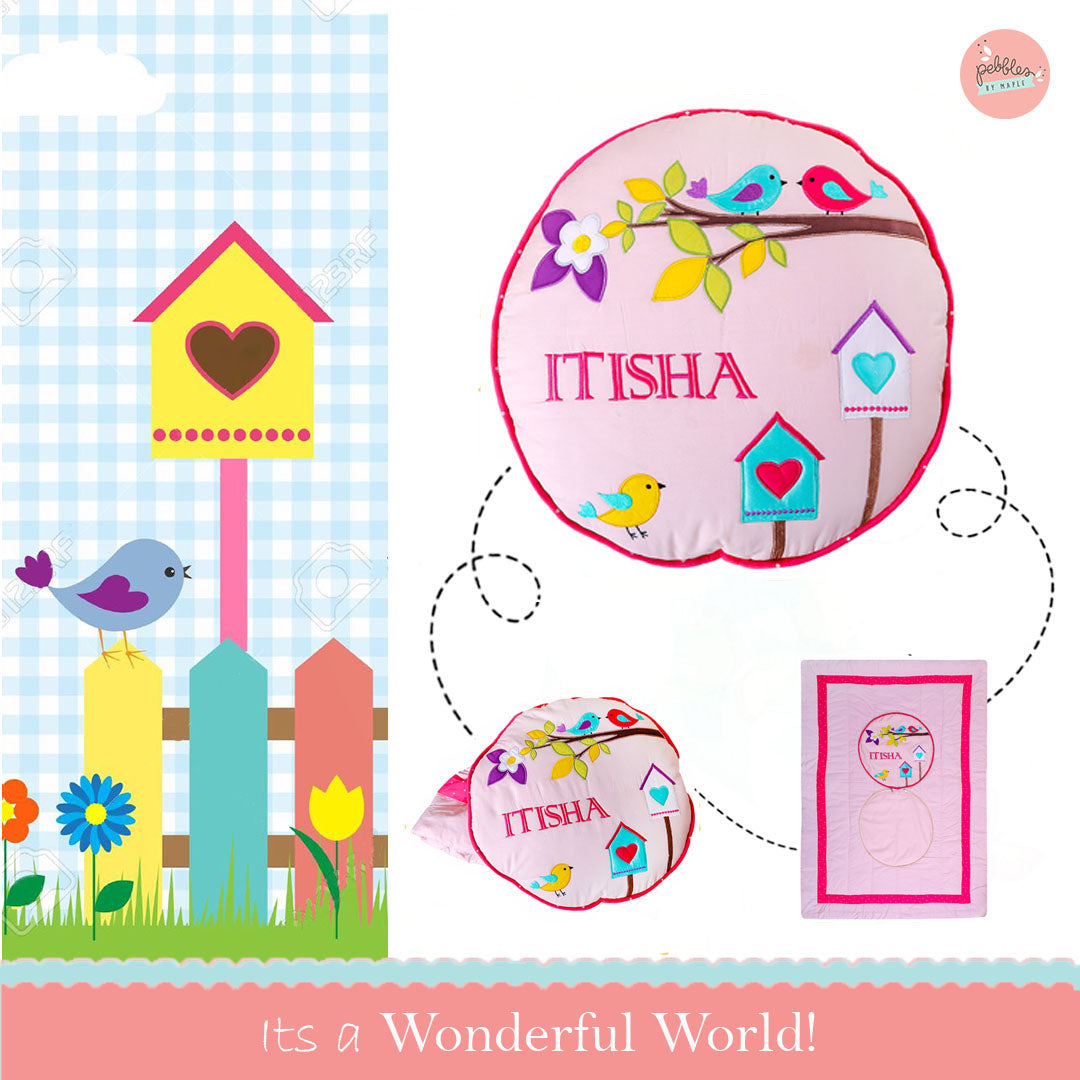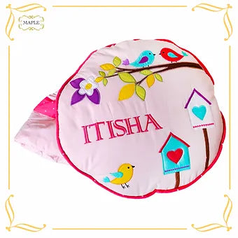 Chirping Birdies Cushion-cum-Quilt (Pink)