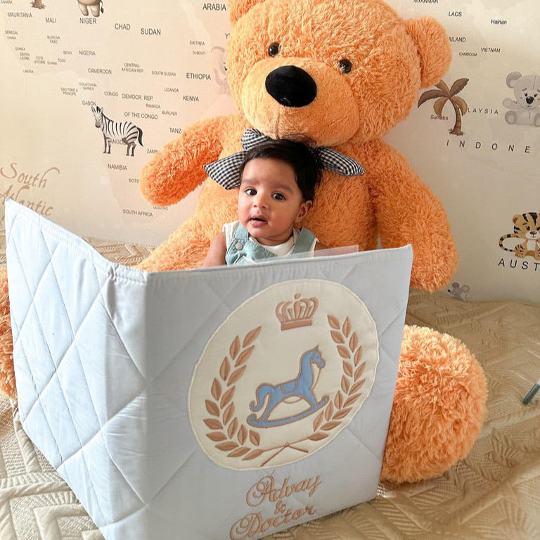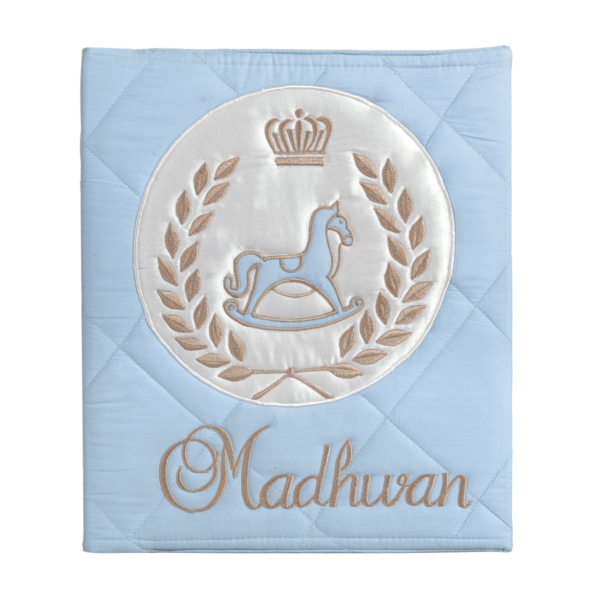 Give your nursery a majestic charm with our Royal Steed Collection. The rocking horse inside a leaf crest embodies the quintessence of a charmed childhood. Our mongrammed works are a delight for aesthete homes.