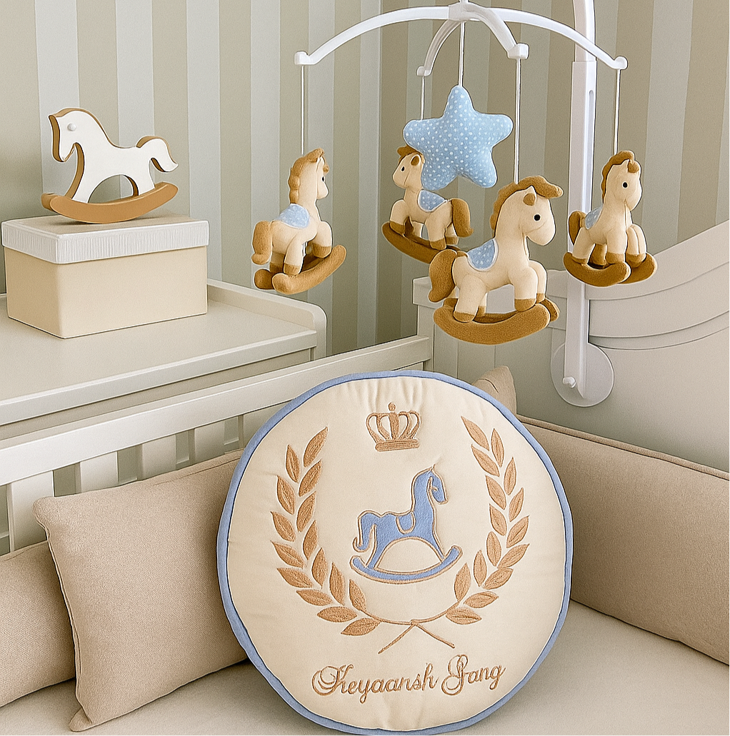 The designs are carefully selected to have a learning value for the child as our experience says that the child often like to play with the cushion and keeps it close, especially when the NAME of the child is threaded for personalisation.