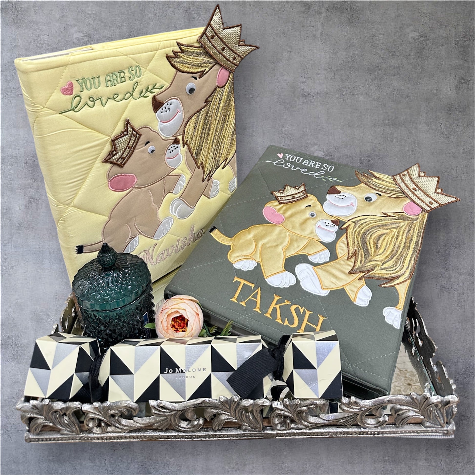 IMPORTANT: the gift tray, Jo Malone set and other accessories displayed are not included in this hamper. The images are only a set up/recreated on AI to showcase the products in an attractive gift style!